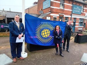 CELEBRATING COMMONWEALTH DAY 2024 – In the 75th year of the Commonwealth of Nations, Cowes Town Council is celebrating Commonwealth Day today. The Deputy Mayor Cllr Stuart Ellis read the Affirmation at Francki Place, Cowes, accompanied by Cllrs Sanders and Walters and Town Clerk, Claudine Russell, followed by the raising of the Commonwealth Flag.